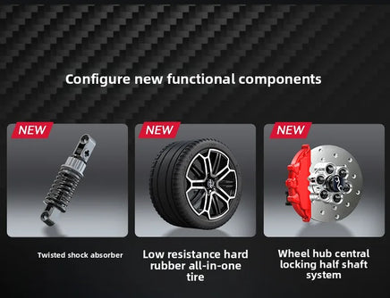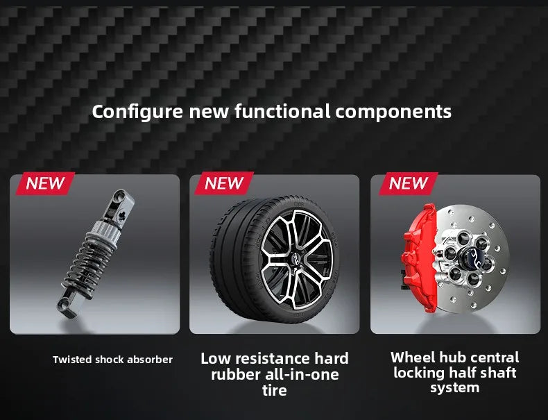 • Low-riction Tires: Solid rubber compound for smooth drifting/turning