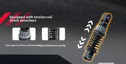 • Adjustable Coilover Suspension: Customize shock travel/stiffness