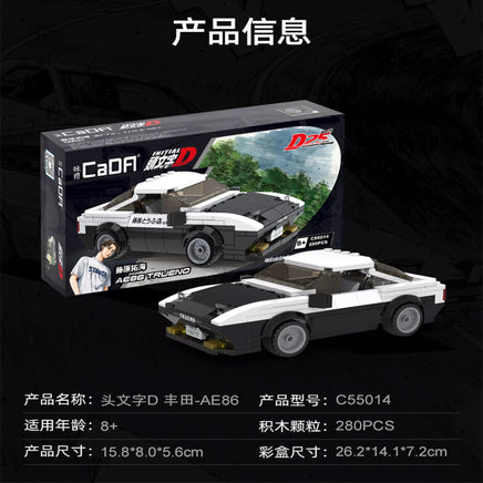 CaDA Initial D Toyota AE86 Trueno brick model car kit. Made with extreme attention to detail at a 1:24 scale, this licensed car model features turning wheel steering, a detailed interior, and iconic stickers. With 280 pieces and an easy-to-follow instruction manual. Perfect for gift-giving and commemorative collections, this brick model is a wonderful combination of manga and brick building.
