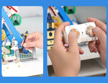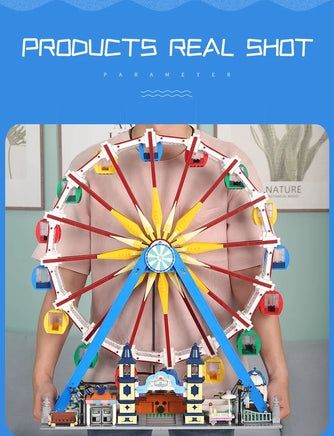 Step into the magical world of amusement parks with our Motorized Ferris Wheel building block set! With an impressive 3836 pieces, this Theme Park Series model lets you create a fully functional Ferris wheel that rotates and dazzles with LED lights. Let your imagination soar as you build this iconic ride, complete with ticket halls, canteens, and intricate architectural details.