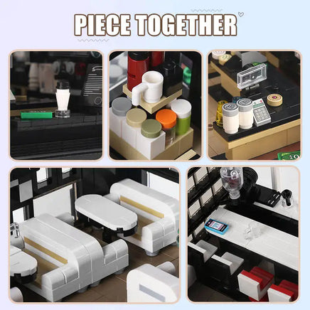 Our European Modern Cafe is back, now in a fully modular design, featuring removable sections. To top it off, we've added extra interior LEDs to make the model a standout attraction at night.