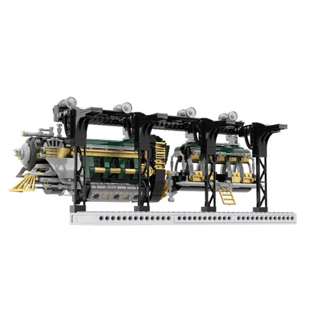 Base the design of the train station on Victorian-era architectural styles, which often feature ornate details, large windows, and decorative elements like arches and turrets. Use brass and copper materials and accents throughout the station’s structure and décor. These metals are staples of steampunk aesthetics and can be employed for railings, signage, lighting fixtures, and more.  Include visible steam-powered machinery such as large gears, cogs, and pipes. These elements can serve as both decorative features and functional parts of the station’s design. Incorporate oversized clocks and pressure gauges into the station’s interior or exterior. These can be both decorative and functional, reflecting the steampunk fascination with time and technology.