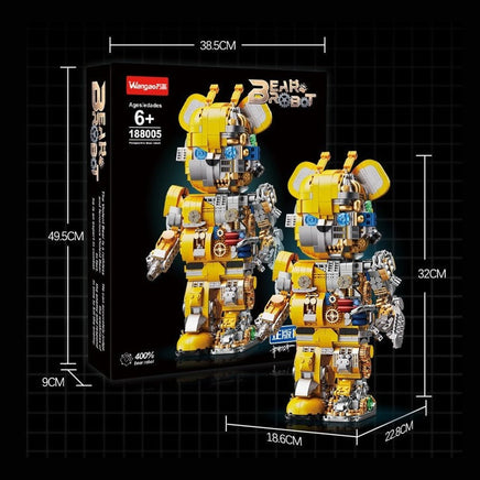 Discover the wangao building block, mechanical bear series. These incredible sets offer four different bear robot models based on popular characters: zaku, angry bear, deadpool, and bumblebee. Each set includes about 2000 pieces of premium building blocks that can be combined into a magnificent robot figure with intricate details and accessories. Whether you want to showcase them on your shelf or have fun with them, these bear robots will amaze and entertain you. Get yours now and experience the joy and challenge of creating your own mechanical bear!