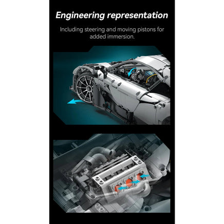 - Technical intricacies like the drivetrain and numerous moving parts (including opening doors, independent front and rear suspension, and various engine components) enhance the unique building experience.